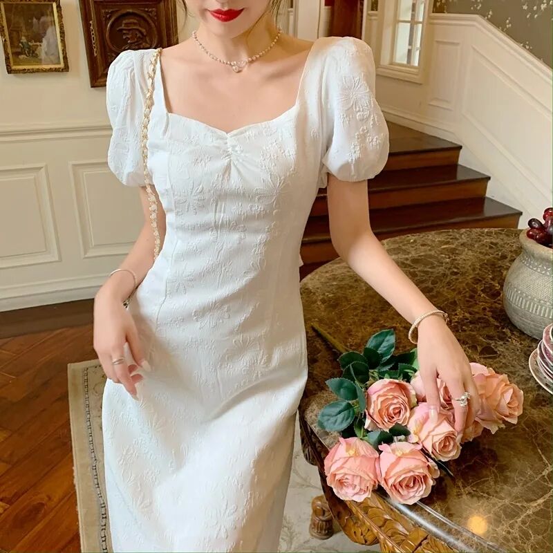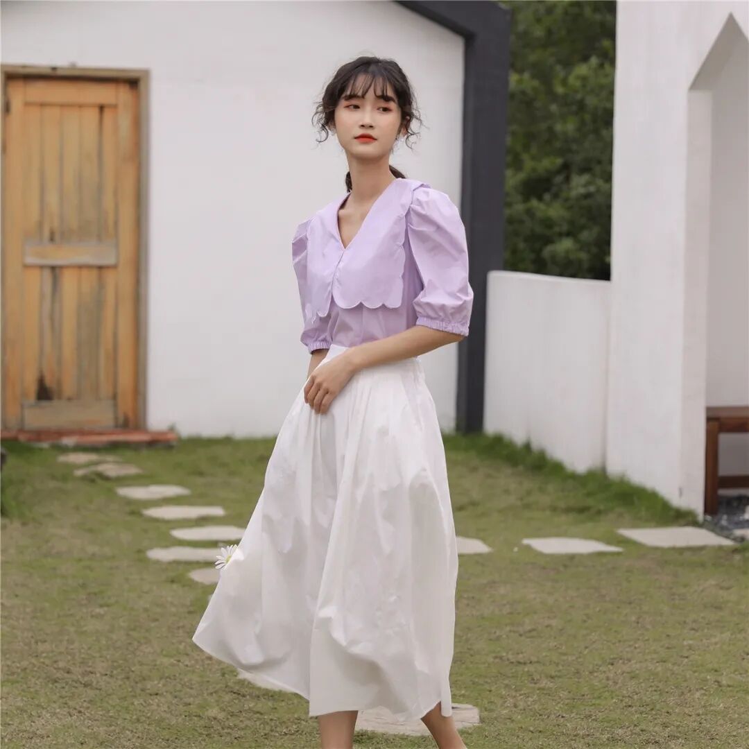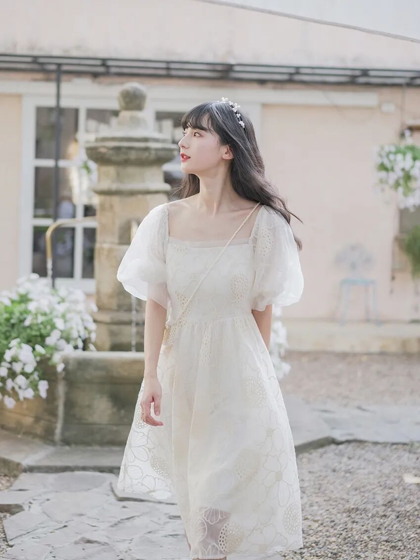 泡泡袖小白裙是我们平时最常见的种类啦,不仅显得可爱少女,还能完美遮住手臂的肉肉。