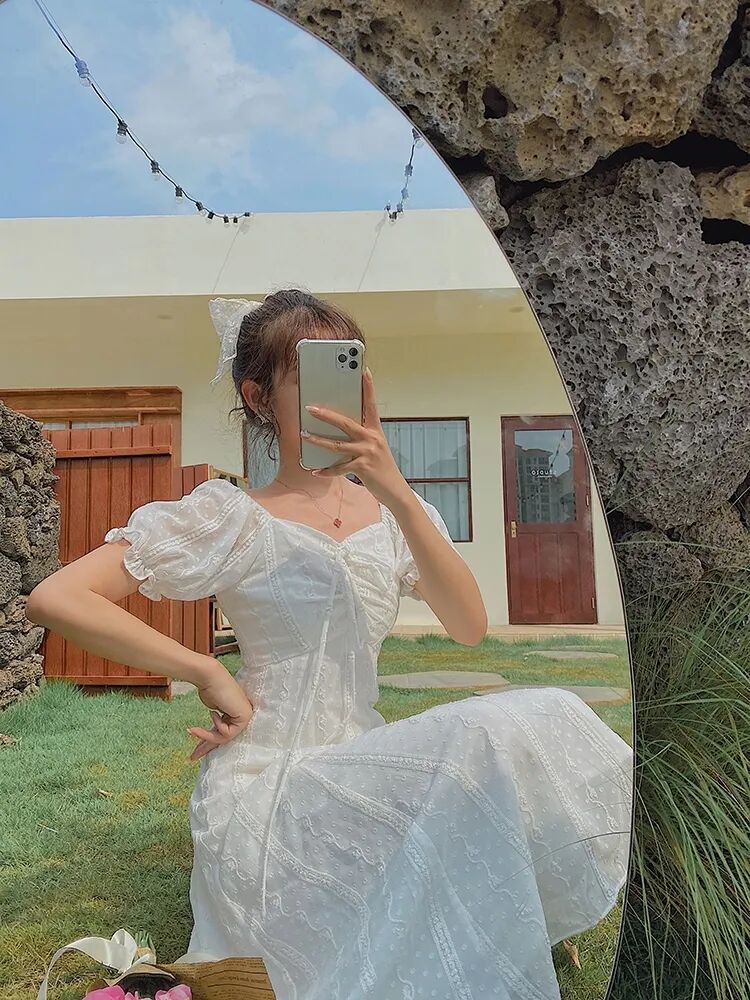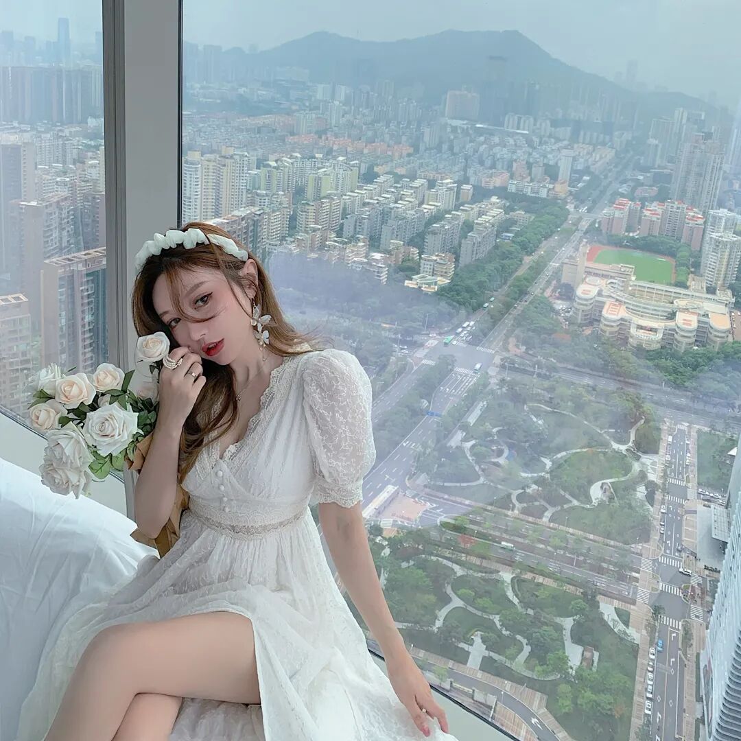 蕾丝小白裙算是最有女人味的一种,精致的白裙裁剪与贵气的蕾丝钩花结合,气场全开,可通勤、可约会、可度假,完美hold住任何场合。