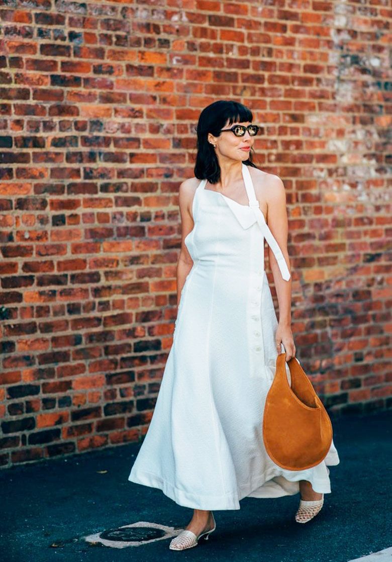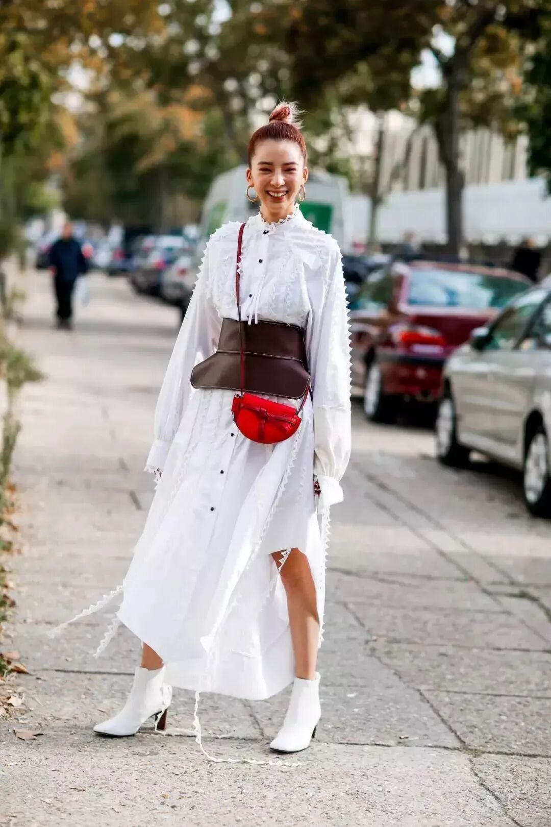 白裙黑发很沉闷,容易埋没在路人堆里。搭配亮色的包包或鞋子,才能增加记忆点!