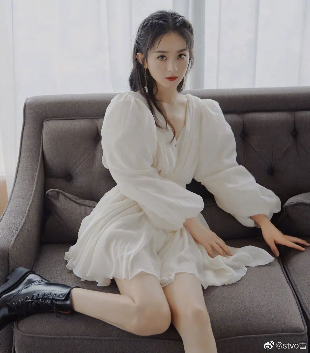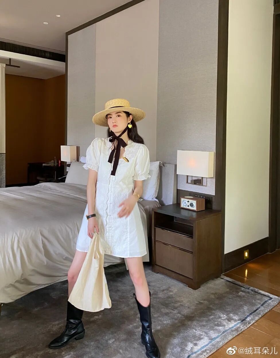 最让我惊艳的,还是颖宝上了热搜这套泡泡袖白纱裙造型,搭配浪漫卷发和黑色皮靴,又仙又酷,难怪她可以成为冯绍峰心头的白月光呀!
