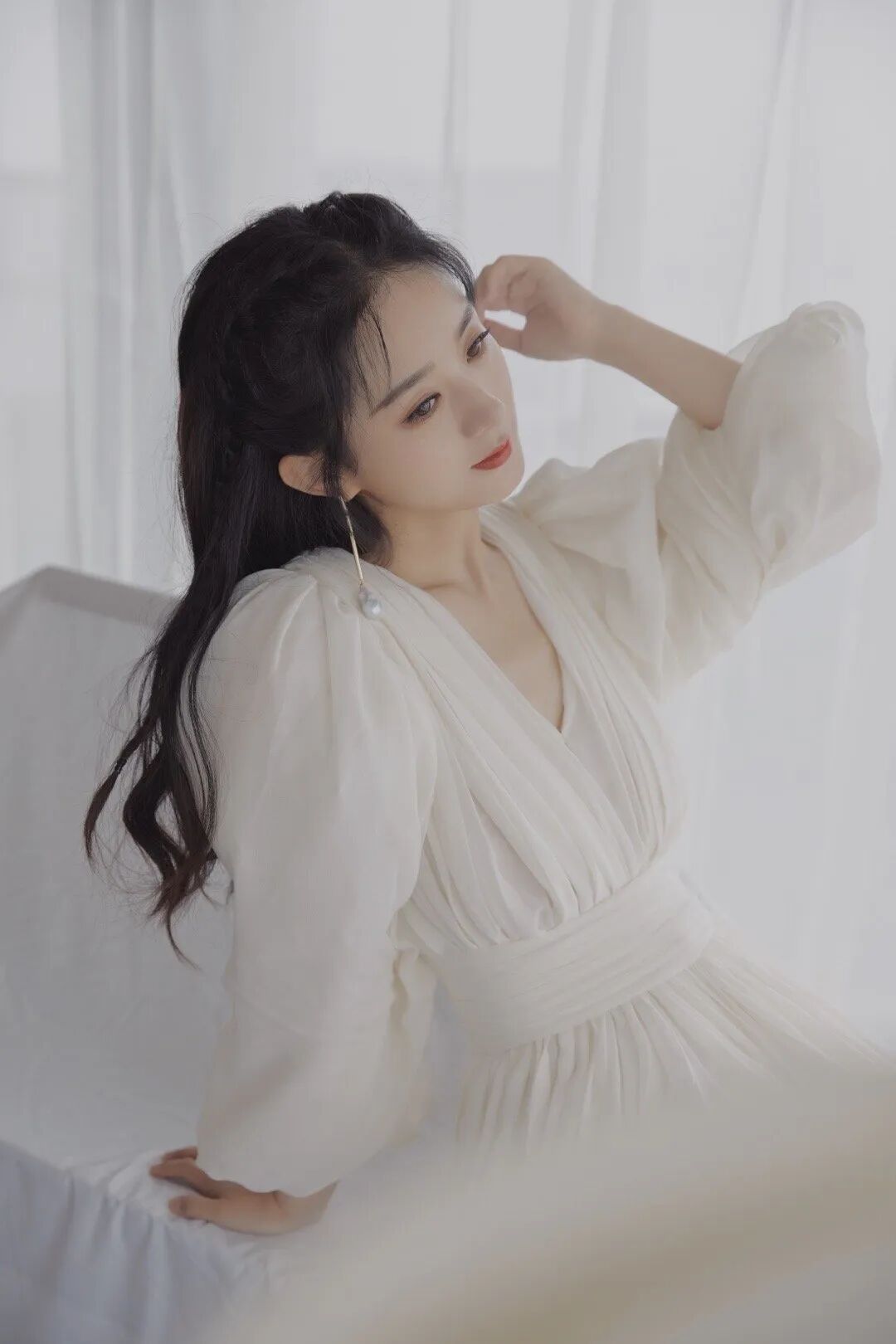 说到雪纺白裙,不得不再发一下颖宝的美照啦!