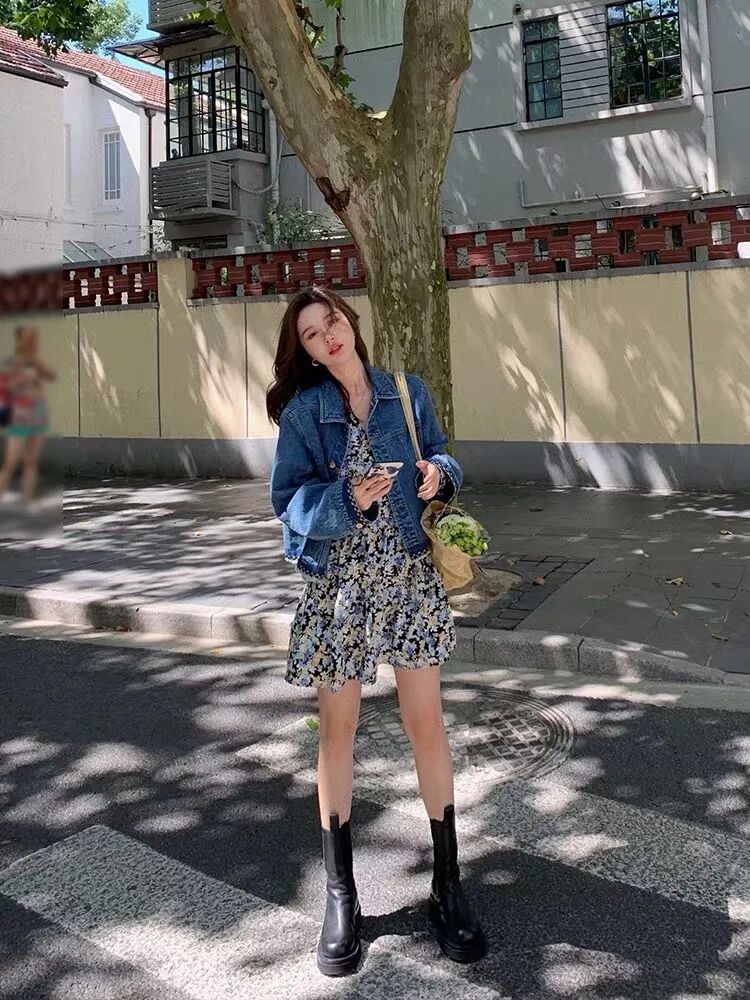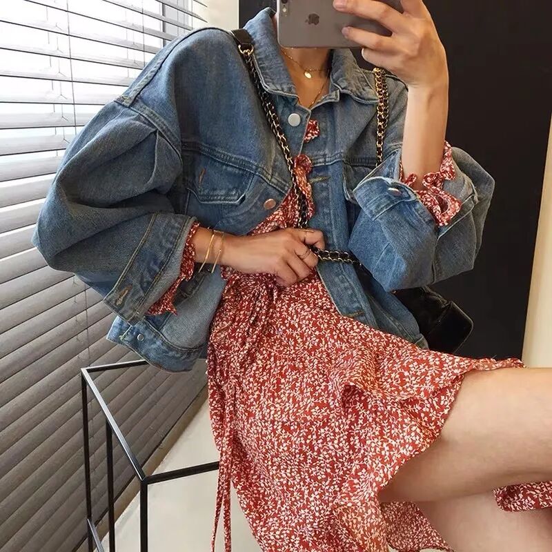 如果一定要选择牛仔最经典的穿搭,那一定是搭配上最近超火的碎花裙啦!