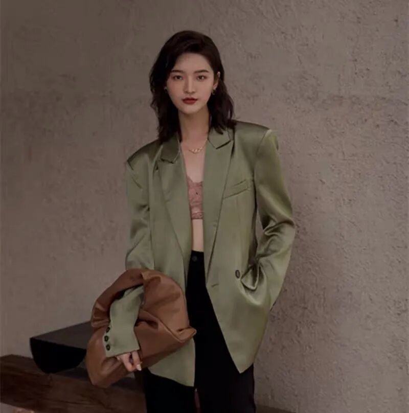 缎面短款小吊带+缎面西装,整个人的气质xiu一下就提升上去了!