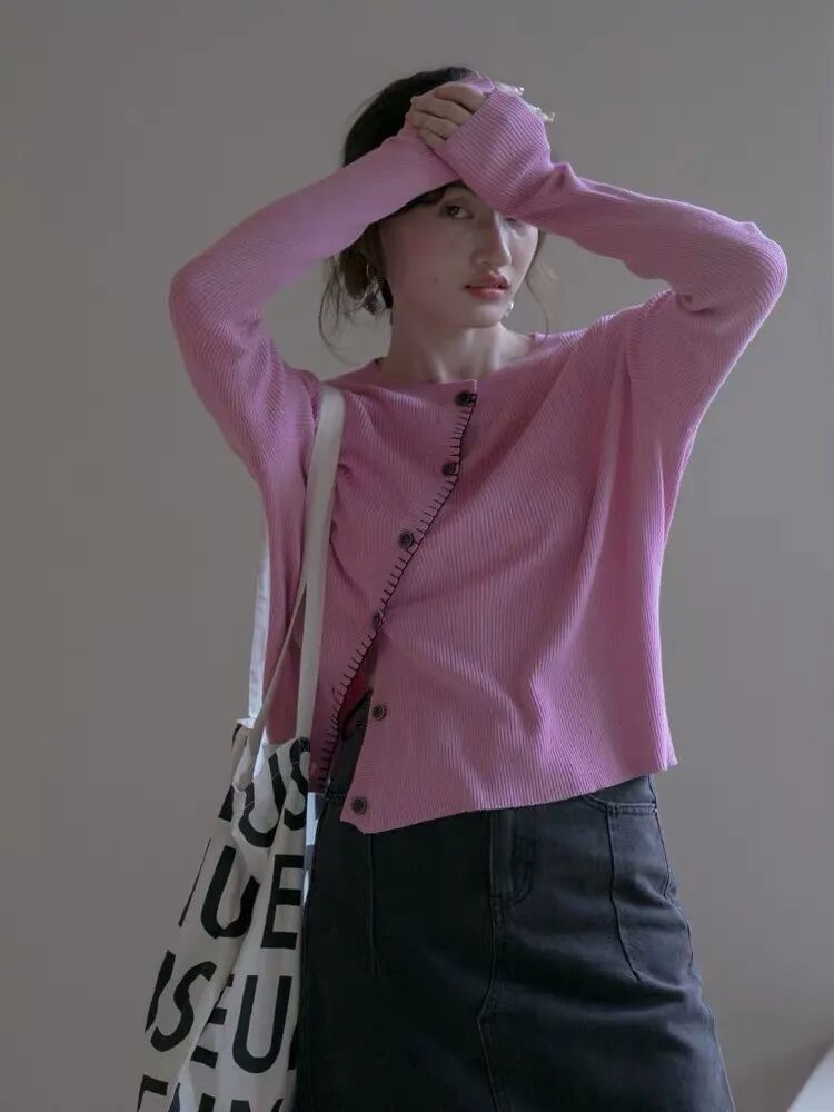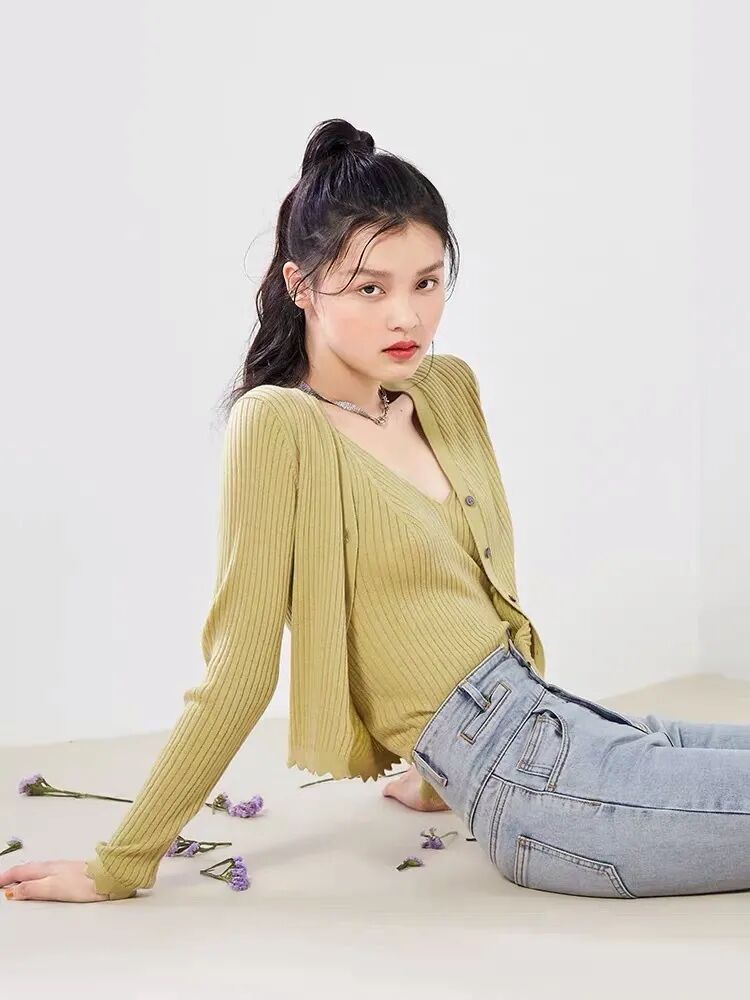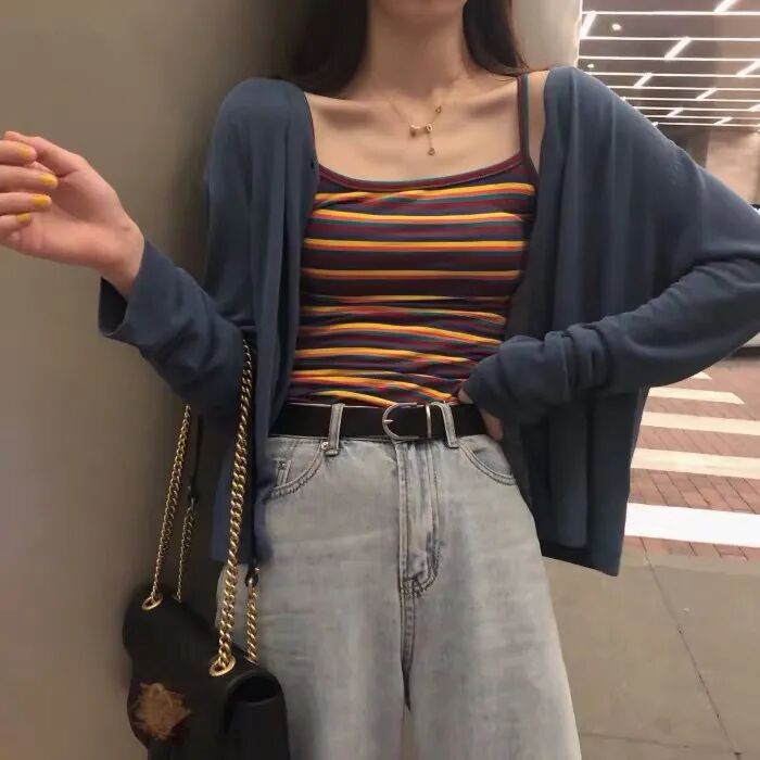 如果你觉得只穿小吊带太冷,那直接把针织衫扣上,又会是新的穿搭啦!