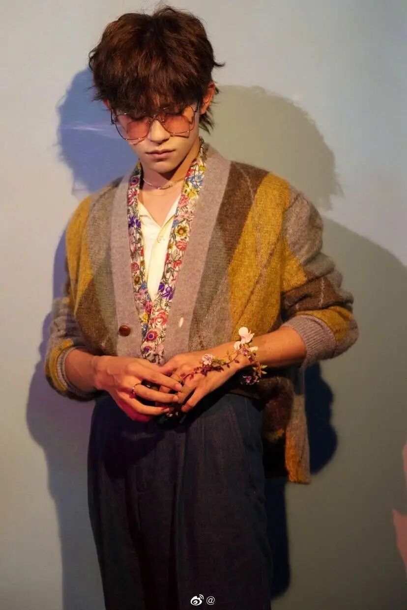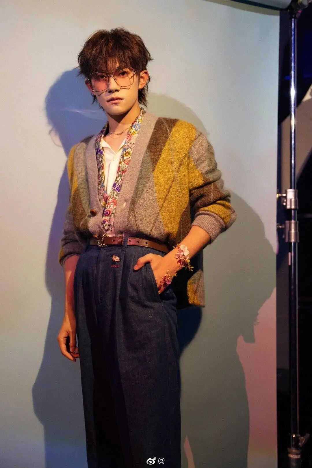 易烊千玺拍画报的时候就把针织外套穿上身拍,拍出了跟普通人不一样的感觉~