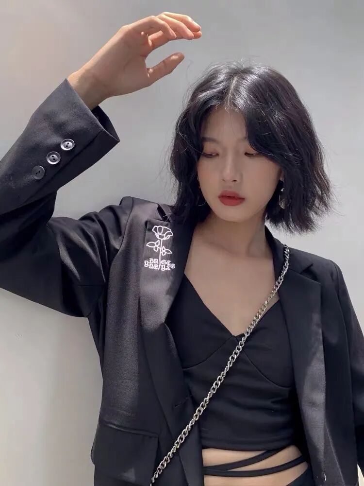 西装外套里面搭个露脐小段T,这也太酷了吧!