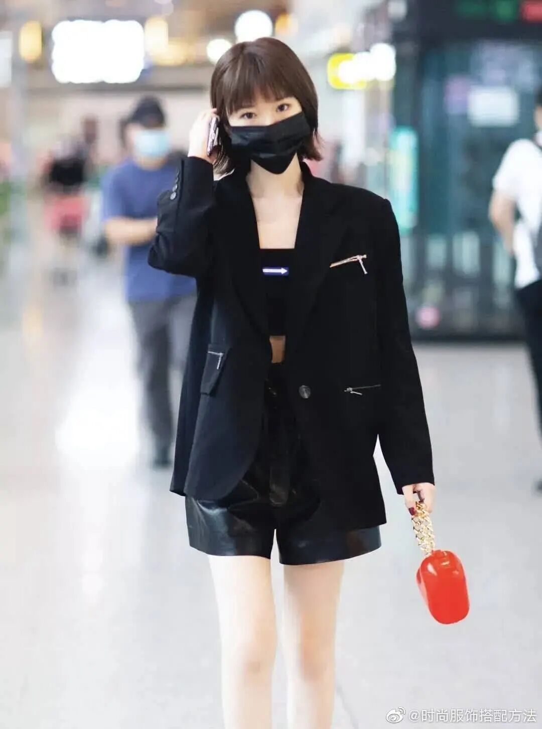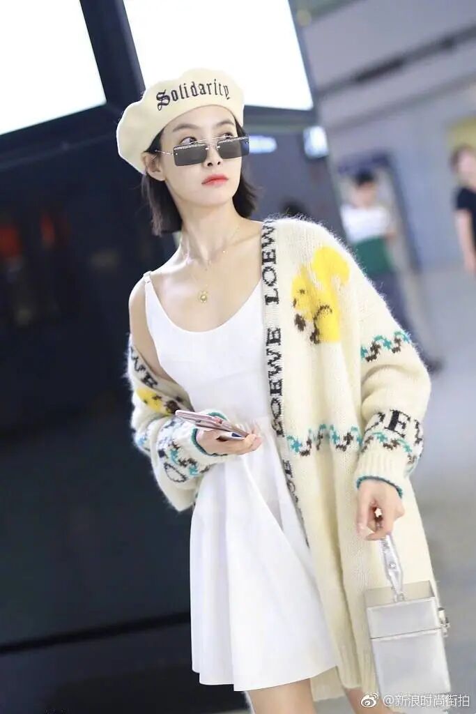 宋茜的机场照则是把针织外套穿得甜美起来~顺便还露出大长腿呢!