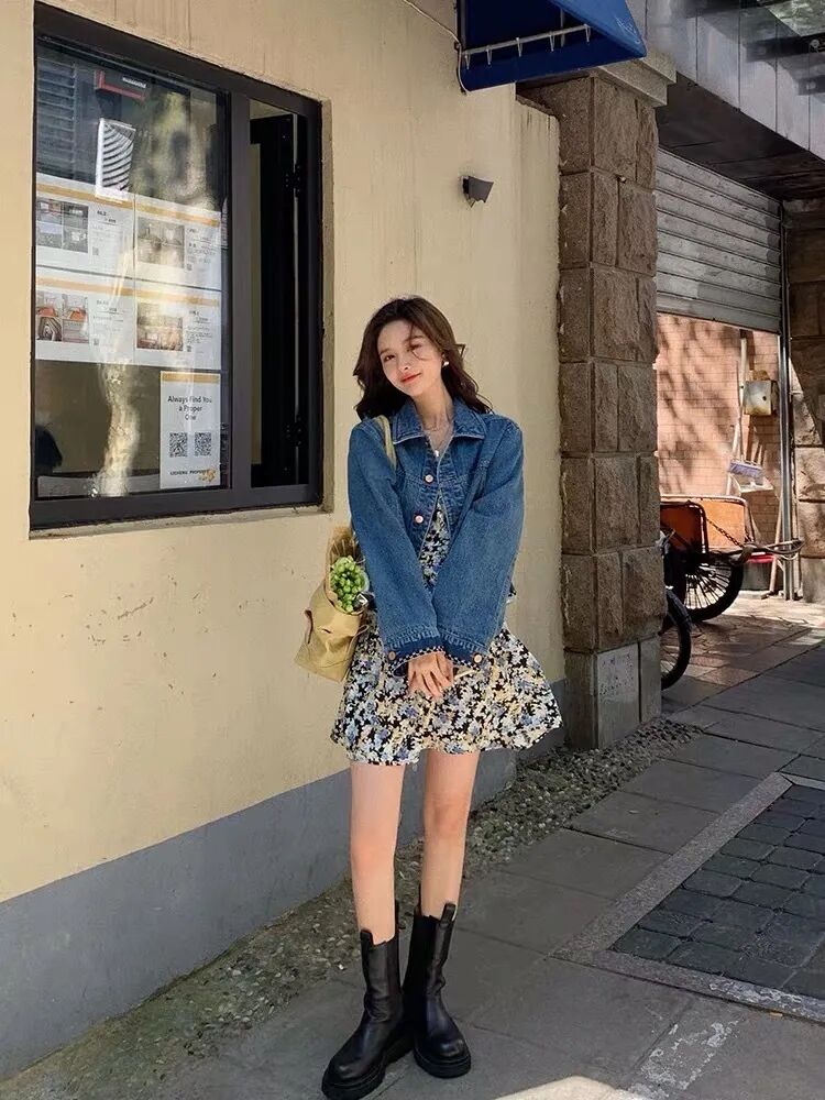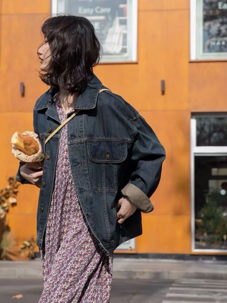 牛仔外套不能搭配花裙子?初秋4件薄外套这样穿,好看到想报警!