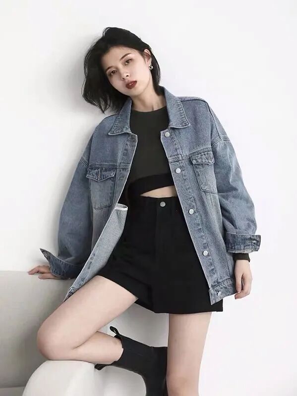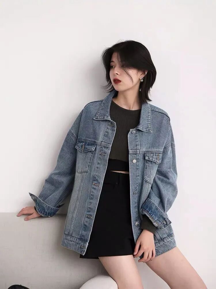 而牛仔外套也要选择宽松的哦,如果是选择紧身的话整体看上去就会非常急促!