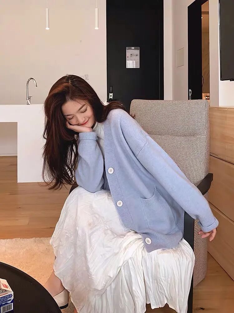 但是针织衫的颜色最好选择莫兰迪色哦,不然看上去会很突兀~