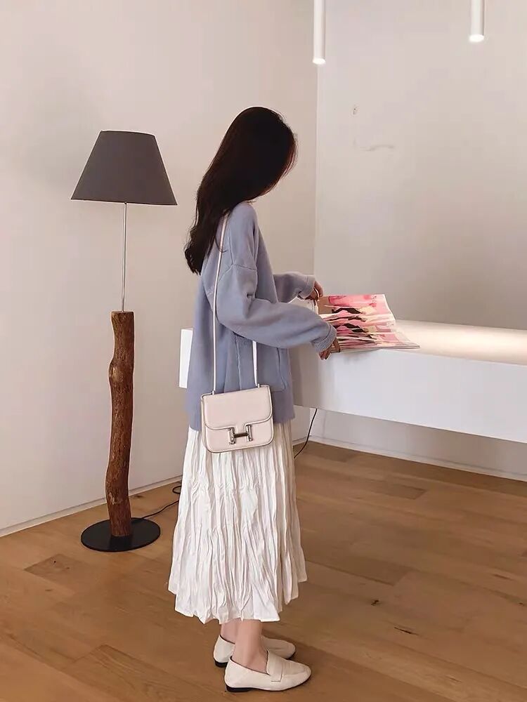 温婉女孩一定会选择长款白色百褶裙,能把整个人衬得温柔文雅。