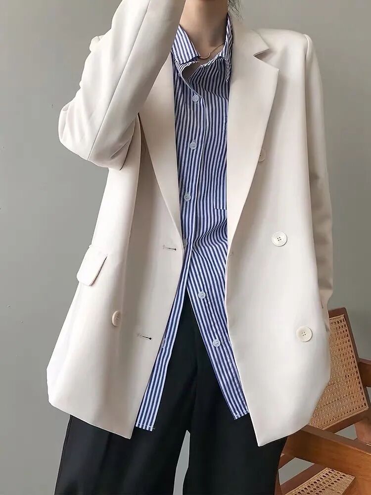 各种衬衫跟西装都是绝配,条纹的,宽松的,通勤的,统统都可以!