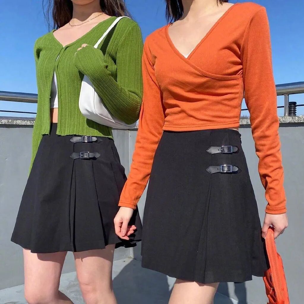 妥妥的女团风穿搭啊,而且开衫的V领和胸前的竖排纽扣超显瘦的,微胖和圆脸的姐妹都可以放心参考。