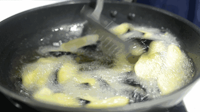 其三,“过油”的方式。因为油的温度高并有一定的黏稠性,炒前先过一下油,能在食材表面形成一层致密的油膜,减少它氧化变色的可能性。