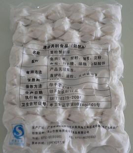 半成品食材,极其方便快速,需冷冻保存。-18度以下可以保存12个月之久。产品色泽晶莹剔透,外面是劲弹的百花胶,里面包的蟹黄和蟹粉,口感鲜美,富有弹性。出品卖相美观,口感独特,是一道真正的好食材。也可以与野山菌菇同煮,即成锅仔野菌蟹籽球。