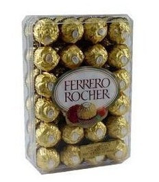 费列罗意大利榛果威化巧克力,开创多层式用料,外面铺满巧克力碎果仁,里面有威化、软巧克力和整粒榛子,带来多重口感的享受。而且每颗ROCHER选用金箔纸独立包装,陈放在透明礼盒内,意念新颖独特,装璜典雅华贵,送礼之佳品。