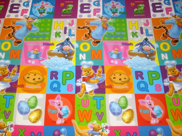 3、独家团购韩国美龙爬行垫加厚款小号:快乐维尼熊,快乐鸭鸭 ,彩虹ABC,流氓兔,跟我学英语98 包快递.(此款方便携带,室内户外均可