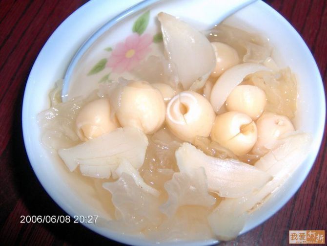 银耳性平、味甘淡,有滋阴、润肺、养胃、生津、益气、补脑、强心之功效。不但适宜于一切妇孺、病后体虚者,且对女性具有很好的嫩肤美容功效。据说银耳和燕窝的功效差不多~~所以我真的超级爱银耳的~~