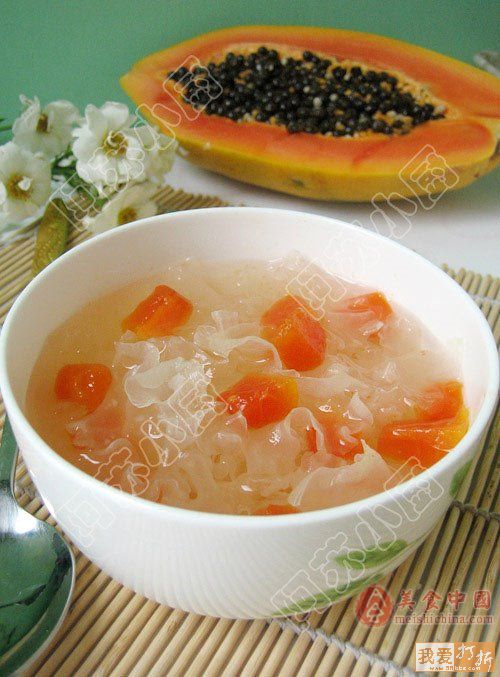 木瓜半只(约200克),银耳三大朵(约20克),冰糖适量(约50克)。
