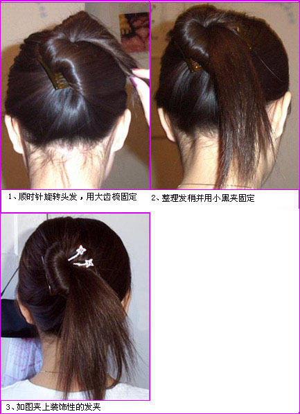 2. 头发旋紧,一直绕进去,好象包头发一样