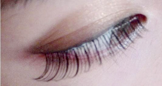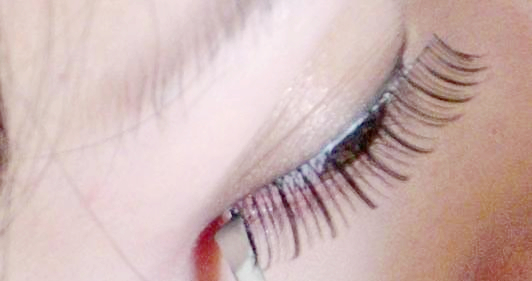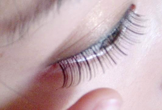 这个时候整条的假睫毛就基本贴上去了,但是还不是最牢。有可能在中间的地方仍有点空隙。