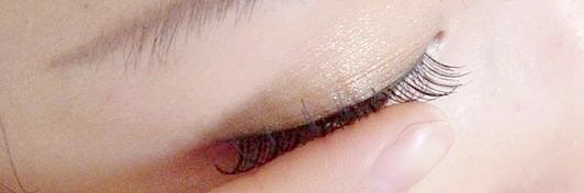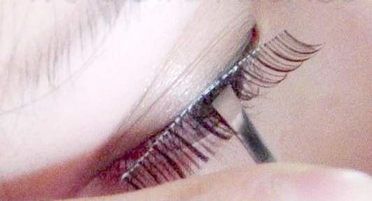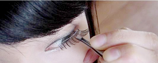 和眼尾一样,也是夹住假睫毛的根部,送到内眼角