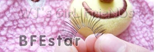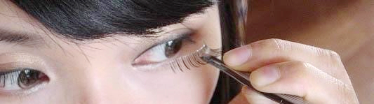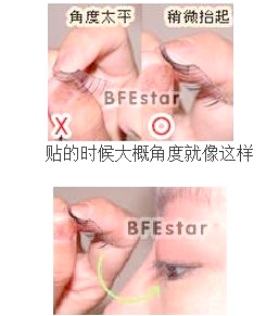 还有很重要的一个是,假睫毛贴的离自己的真睫毛越近,看上去越逼真。所以,贴的时候要有像把假睫毛塞到眼皮和睫毛的交界部分一样的感觉,有由下往上勾向自己的感觉就可以把假睫毛贴了离自己的真睫毛很近。(这只是一种感觉,并不是真的要塞到里面去,大家体会一下哈~~)