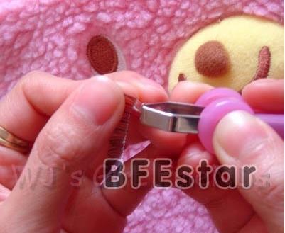 接下来这步不可缺少。请一定要夹翘你的睫毛。一定要从睫毛根部夹起(用3段式的夹法,从睫毛根部夹到睫毛末端,一边夹手一边往上翘,整根睫毛都夹到。这样自己的睫毛可以翘起一整天也不会塌下来)。让你的真睫毛翘起来,这样你的真睫毛才能和假睫毛浑然一体。(自己本身的睫毛不用涂睫毛膏,只要夹翘就可以。然后就把所有的眼妆都画好,最后贴假睫毛!!)
