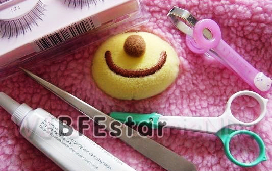 准备工具:胶,假睫毛,平头镊子,尖头剪刀