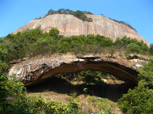 当的朋友来过很多次丹霞山了,所以建议我们走观光悬空栈道,因为我们带着小孩子,也有老人家.去爬丹梯铁锁很吃力.