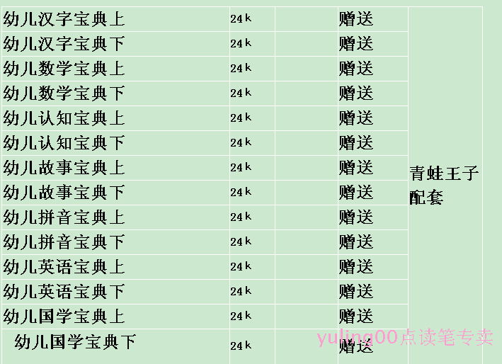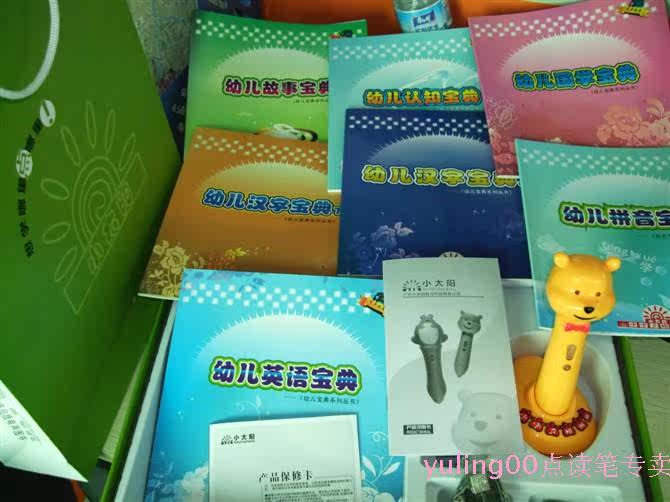 398元哟,标配14本书。【央视上榜品牌】小太阳点读笔--升级促销版小熊,青蛙王子,小精灵官方标配:套餐1(380元):小太阳点读笔+标配的上下册合订本(睡前故事上下册)8本书。套餐2(398元):小太阳点读笔+14本书标配青蛙王子点读笔(小精灵点读笔)+底座+充电器+标配14本书(小精灵18本书)+数据线+合格证+说明书+质保卡 [ 本帖最后由 冯雨玲 于 2010-11-17 11:46 编辑 ]