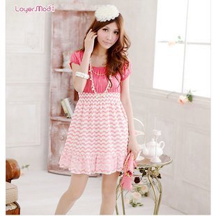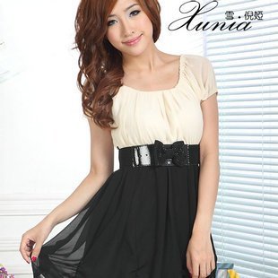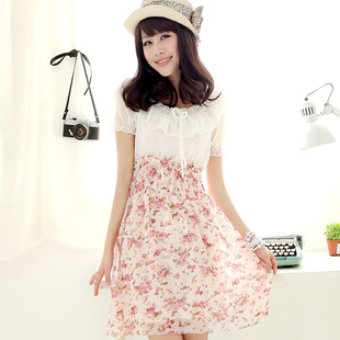 16,雪纺碎花相拼,甜美可爱连衣裙