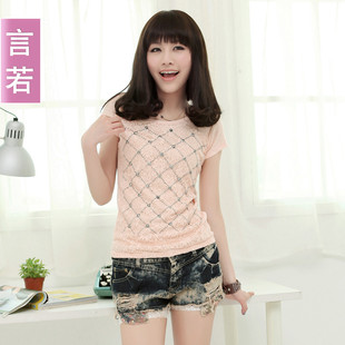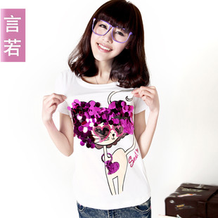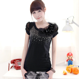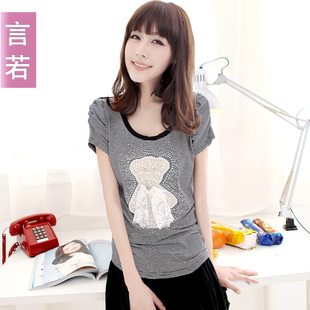 6,烫钻绣珠小熊可爱泡泡袖潮T