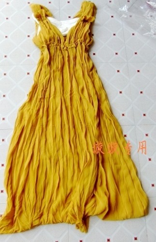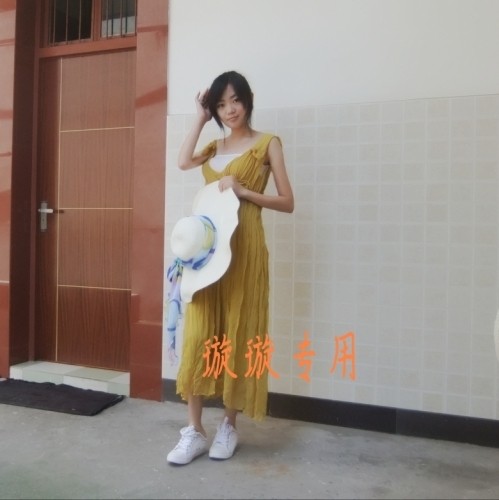 鲜艳的黄色长裙,颜色跟图片上有点相差,比较暗一些,类似于土黄色,料子很舒服,双层的设计,防止走光~赠送了纯棉的白色抹胸,搭配正好~~裙子是高腰设计,可以很好的拉长**体型,让人看着更为纤长,还能遮掩胸部以下不完美的部位~~我身高158cm,体重43kg,裙长刚好到脚踝,不会踩到自己~飘逸~赞赞!今年夏天流行长裙,喜欢的MM都尝试下哦~