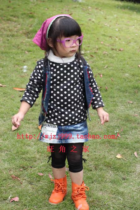 编号005:亮片仿牛仔裤女童加厚打底裤冬款加绒2011儿童冬装新款韩版童裤 团价35元(粉/黄色各1条)
