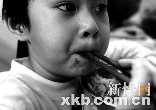 ■乐乐的嘴角还留着被老师用开水杯烫伤的痕迹。新快报记者 毕志毅/摄