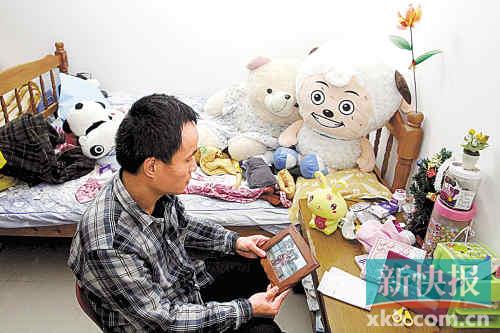 上圖︰剪完發休息時,碧心爸爸靜靜地在女兒房間坐一會,看看女兒的照片。