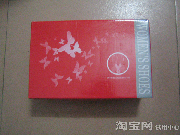 拆开包裹后的鞋盒,大气的红色,还有可爱的蝴蝶~