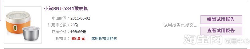 从2005年开始接触淘宝,算是淘宝的忠实粉丝了,在淘宝混了这么多年,买东西越来越多,送快递的天天跑我家楼下……真正接触淘宝试用中心,却是去年六月份的事,看到淘宝提供这么好的试用产品,很吸引人,所以也忍不住加入试用申请的队伍!刚开始申请了十几件,没有一点消息,后来去论坛看了成功申请者的一些心得,知道自己为什么没有申请成功的原因了,于是,开始认真的写我申请报告,当然,也不是所有的东西都去申请,只是申请一些自己需要的东西!幸运很快降临了,六月份幸运的得到了两次产品的试用机会!