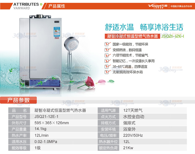 热水器选择了万和最新型号万和 JSQ21-12E-1 凝智冷凝式恒温型燃气热水器(天然气)拉丝银,我买的价格1398元