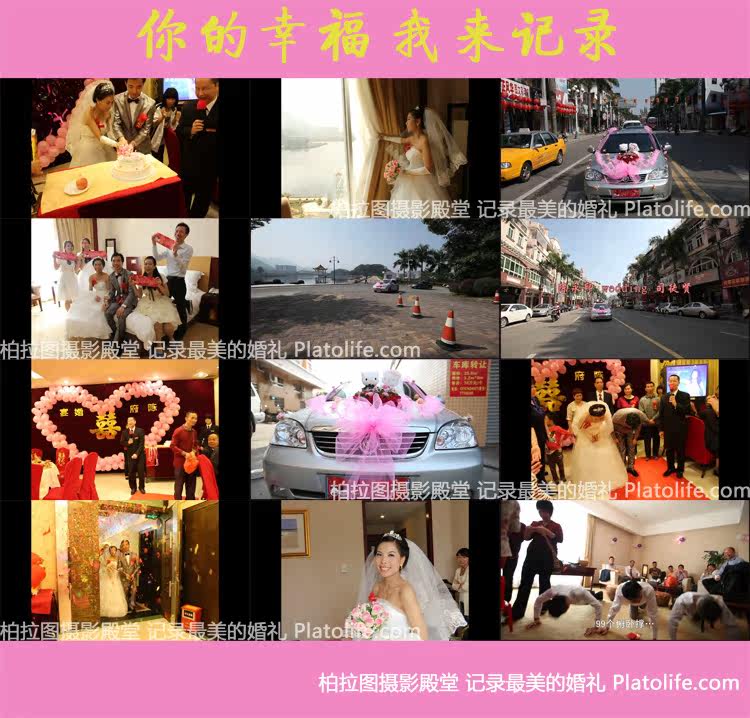 全程婚礼跟拍,使用全画幅单反5DⅡ拍摄,免费拍摄照片200张,记录家庭合影和您的美丽时刻。