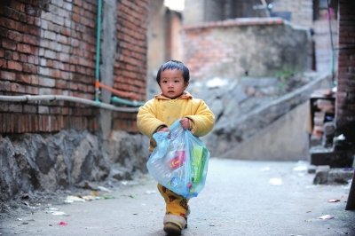“哐”,门外一位路人丢下的矿泉水瓶子应声落地。2周岁的笑笑,抓起垃圾袋寻声出门,奶声奶气地嘀咕:“捡瓶瓶,捡瓶瓶去。”