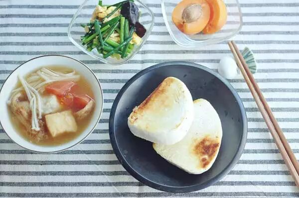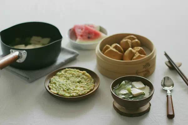 [p=25, null, left]9. 青菜豆腐汤+红糖麦仁馒头+芹菜蛋饼[p=25, null, left]