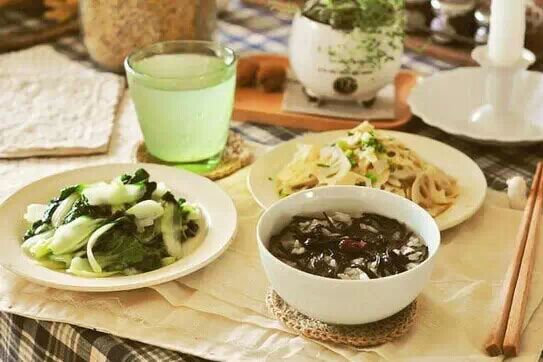 [p=25, null, left]3. 茶泡饭+炒青菜+醋溜藕片[p=25, null, left]