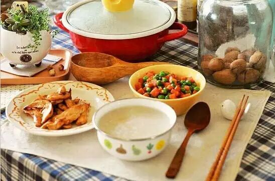 [p=25, null, left]10. 青豆火腿粒+香煎鸡胸肉+粥[p=25, null, left]