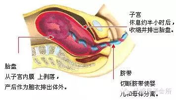 胎儿娩出后,产妇顿觉腹内空空,产道也如释重负。宫缩暂时停止,子宫逐渐缩小,羊水全部流出。没不久,胎盘自动地从子宫壁上剥离、娩出,此时没有剧烈地腹痛。胎盘娩出后,由于整个过程消耗了极大的精力和体力,产妇就像跑完了一程马拉松,身心疲惫不堪,但内心充满了幸福与喜悦。