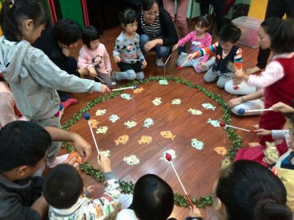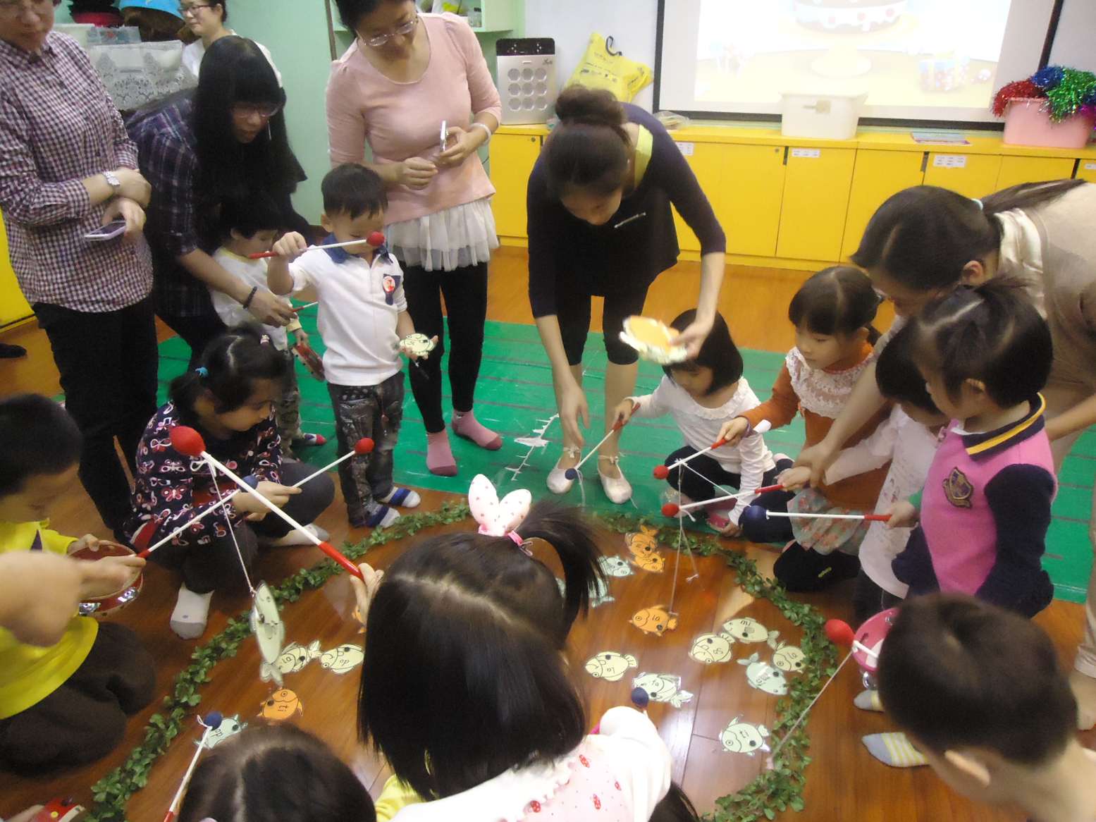 宝贝们和旺旺老师一起动手制作香甜可口的水果宝们在细心在制作着.....做好啦!爸爸妈妈一起分享小朋友制作的黏土水果拼盘宝贝们展示自己动手制作的作品接下来小朋友和老师一起钓鱼,比比谁钓得多哟~~~宝贝们要翻过高山,穿过山洞去寻找宝藏咯!咦,老师手上拿的东西好好玩哟