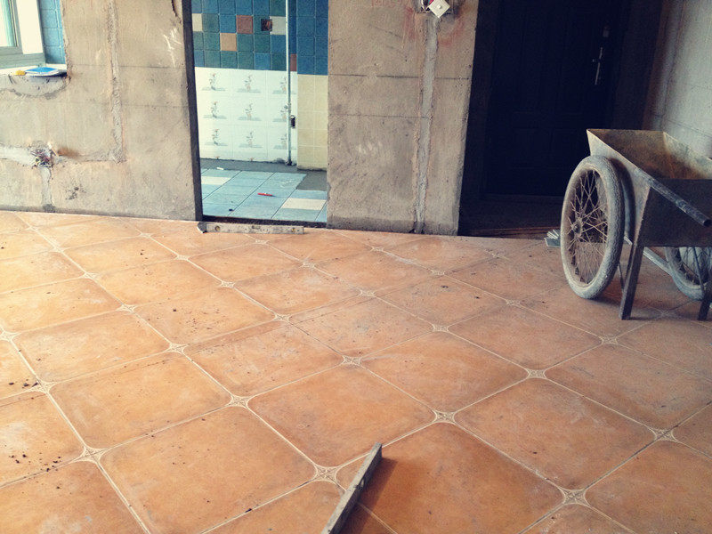 客厅的地砖采用的是50*50cm的仿古砖,是当地市场上买的,这个就是江浙这边产的砖,师傅说就质量而言明显还是我网上买的那些好多了,对此我非常得意啦,说明这次购物非常成功呢!不过这款地砖倒是很便宜的,本来想在网上买圆角砖带有花片的那种,但是那个价格贵了些,因为瓷砖这块已经超支了,所以才在当地买了70多块钱一平米的这款,不过样子还可以哦,来我家的人都说漂亮,哈哈~~~