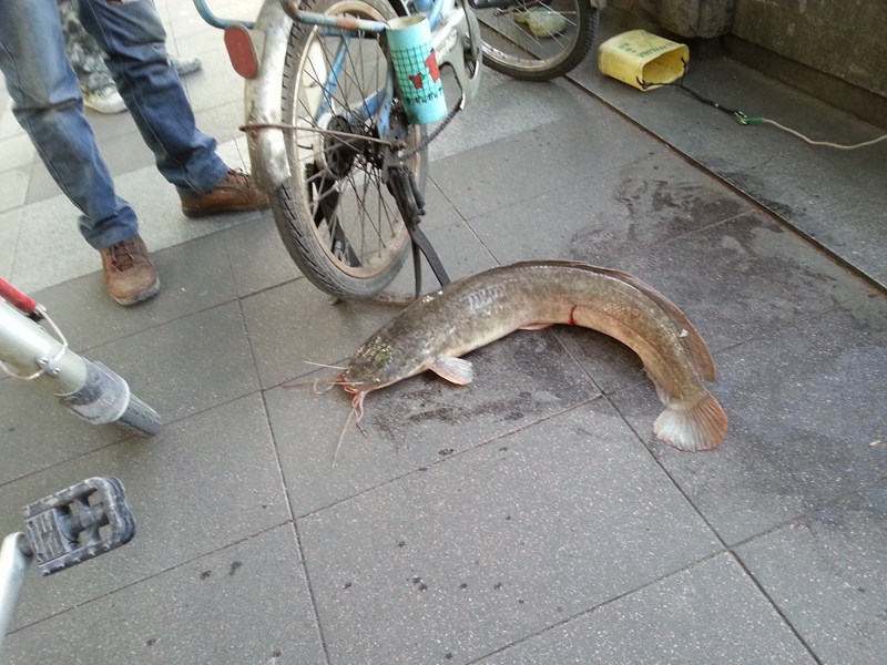 沿江路和滨江路都有好多人系度钓鱼,这个伯伯的收获不错哦!