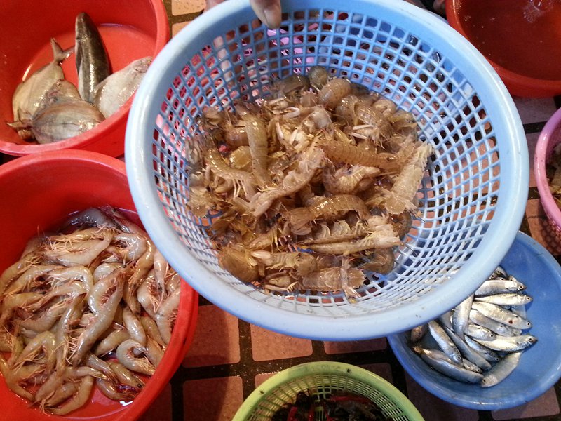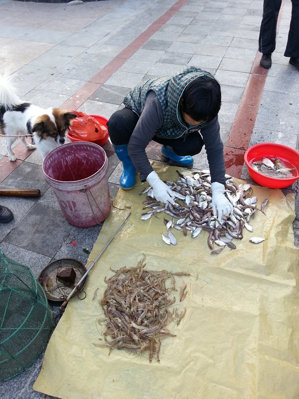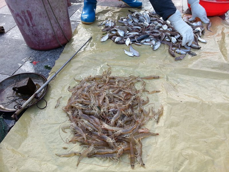 在骑行的途中,有渔民打到渔获后在路旁摆卖,绝对的野生货。